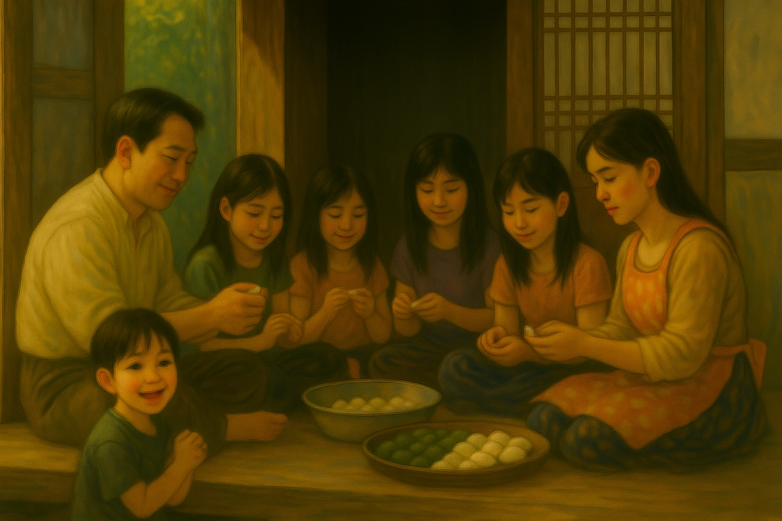 엄마의 미소는 긴 세월을 비추는 달빛이었으며,